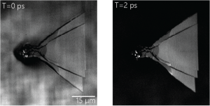 Ultrafast lasers create an excitation in semiconductors at a timescale that is nearly instantaneous compared to all physical relaxation processes within the material. The excitation is deterministic, and the time scale of relaxation processes becomes a source of defect contrast. For instance, an excitation of bulk SiC relaxes almost instaneously, while defect areas containing trapped states will have decay times on a much longer timescale. In the adjacent figure we show that using a TA measurement tuned to a finite decay time, ultrafast imaging offers a background-free measure of select defects in SiC.
